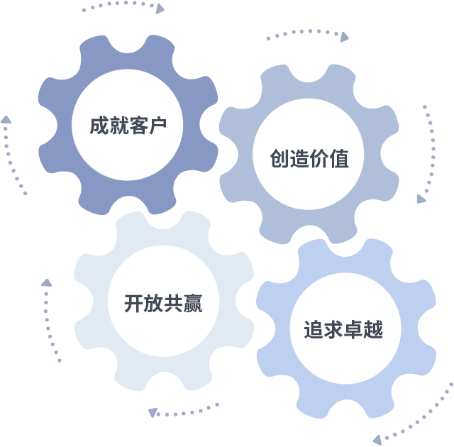 成就客户是一切决策的出发点,创造价值是衡量所有工作的标准,追求卓越是XK星空做事做人的态度,开放共赢是XK星空的格局也是最终的结果。价值观的齿轮环环相扣,推动着组织里的每个人不断向前。